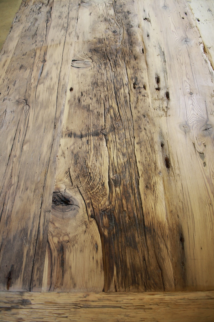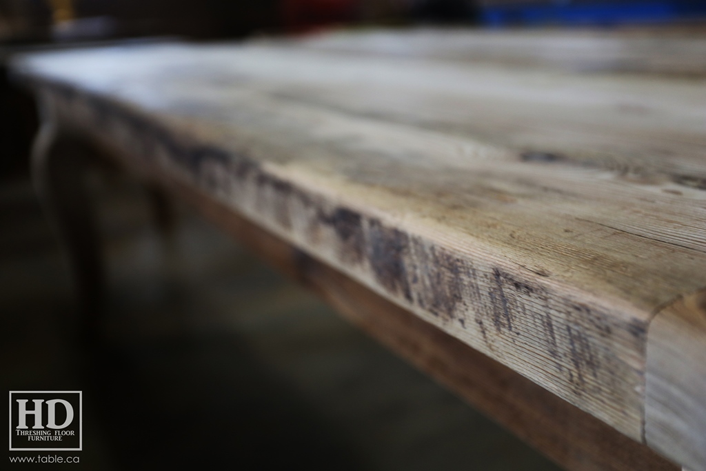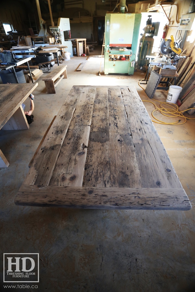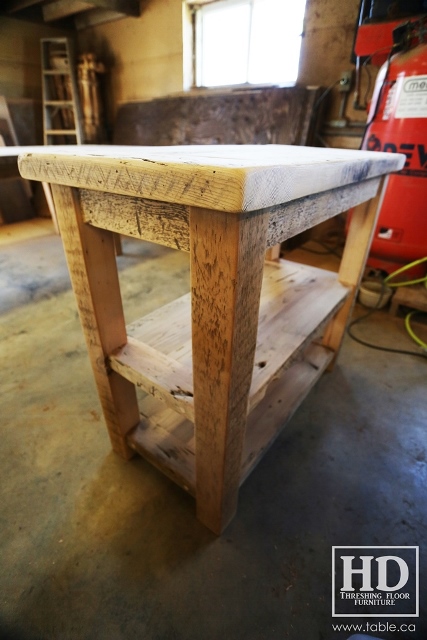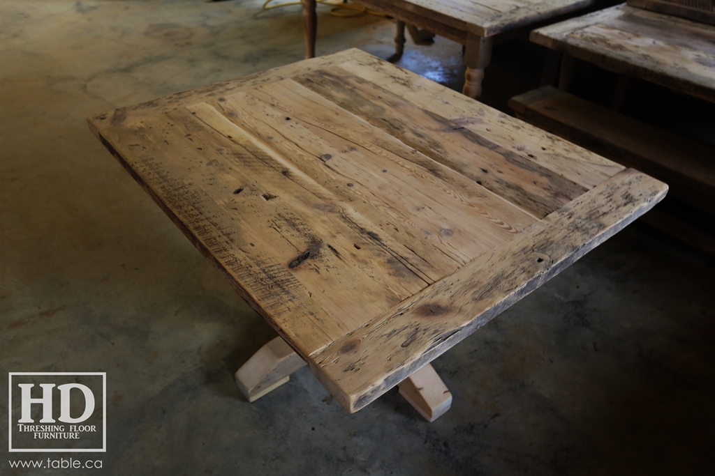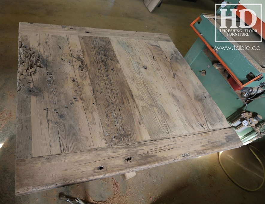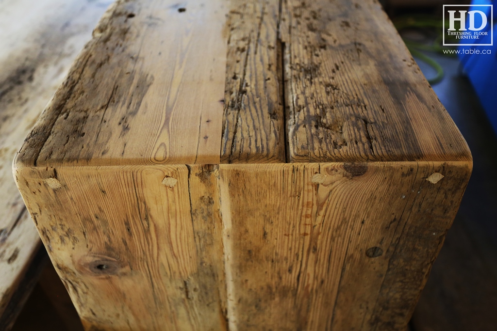 Custom Built Reclaimed Wood Tables & Cabinetry Made from Ontario Barnwood – Antique distressing in aged wood maintained – Original barnwood edges maintained