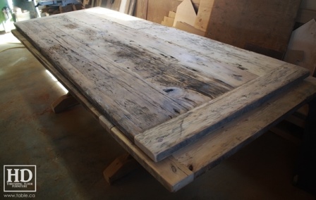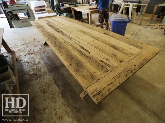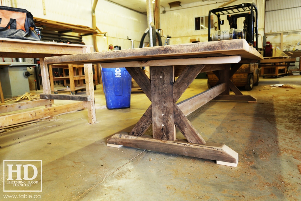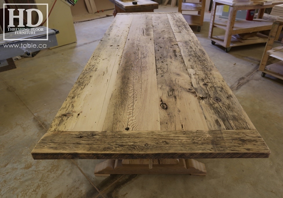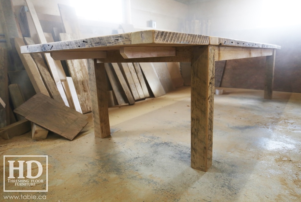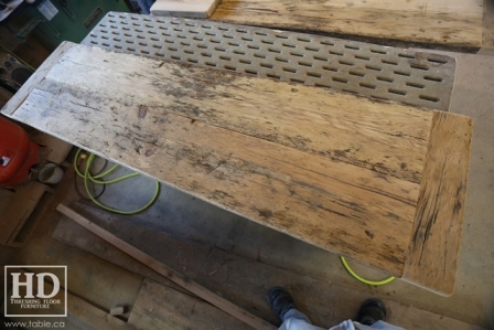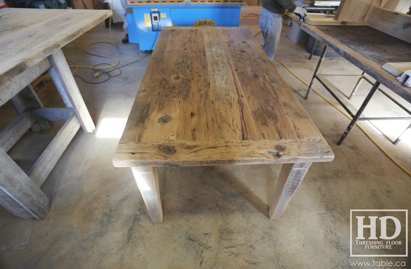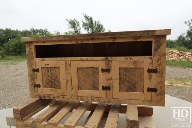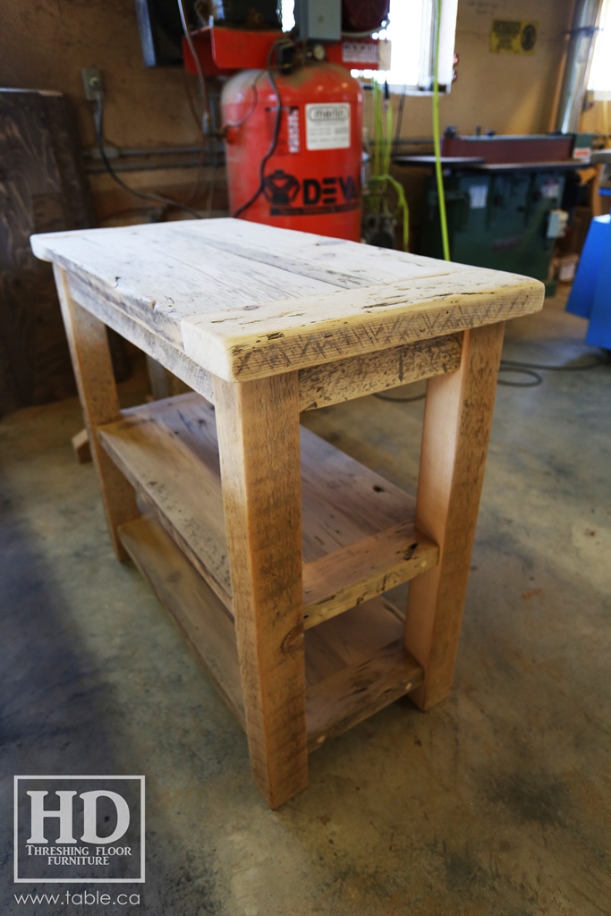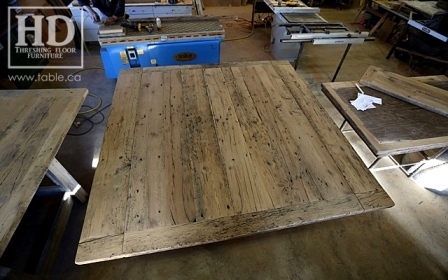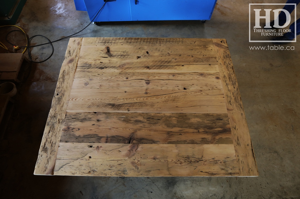 Custom Built Reclaimed Wood Tables & Cabinetry Made from Ontario Barnwood – Antique distressing in aged wood maintained – Original barnwood edges maintained