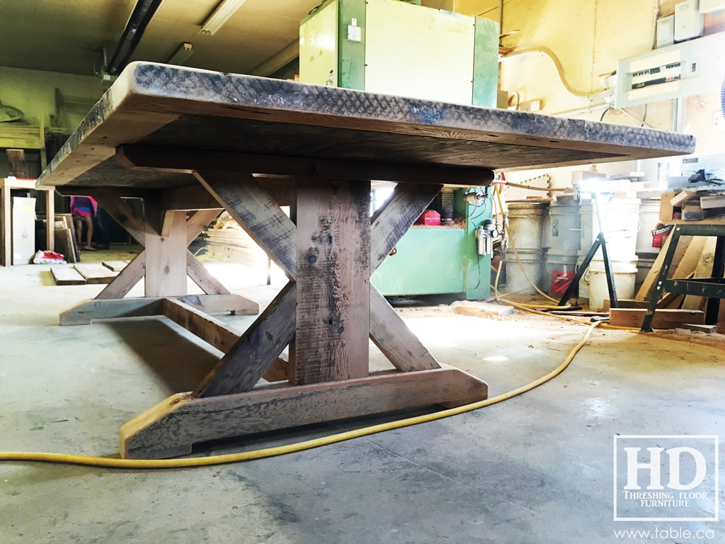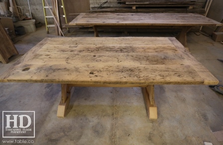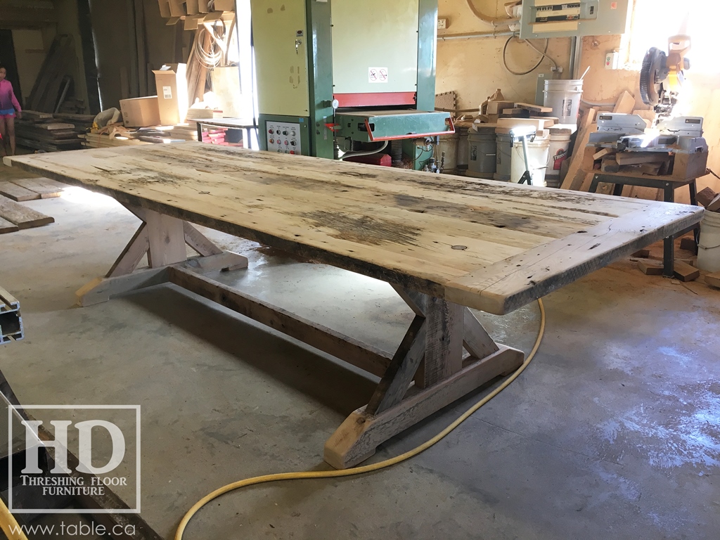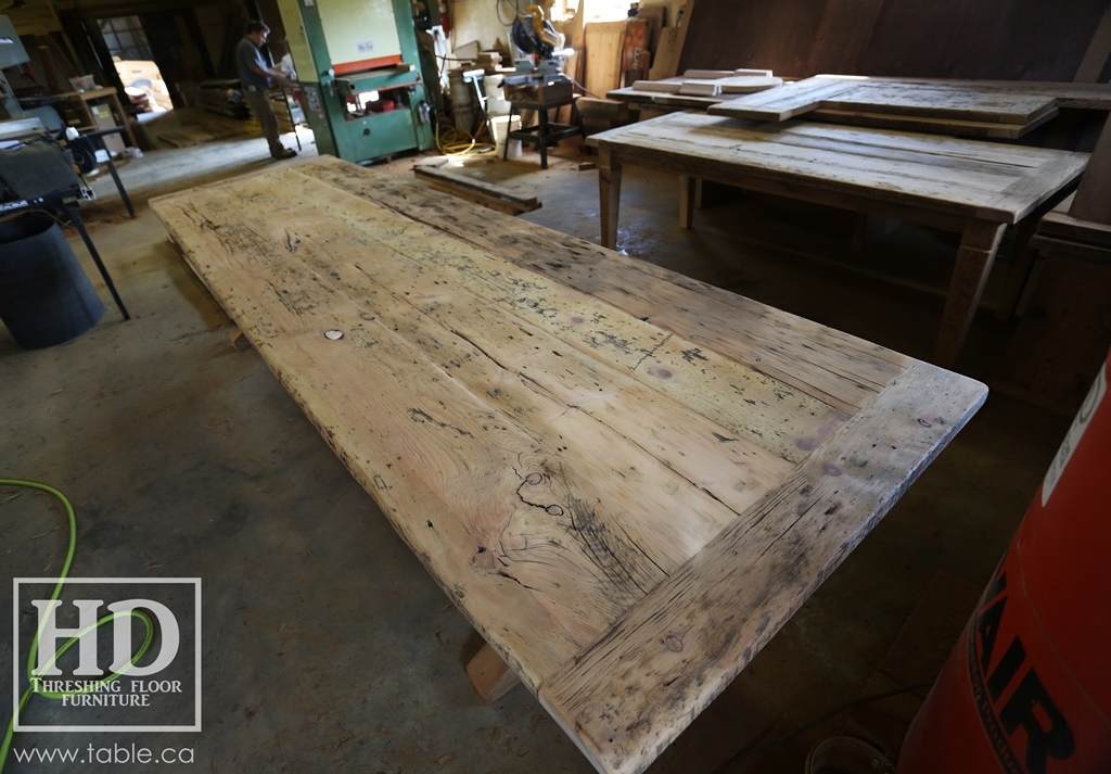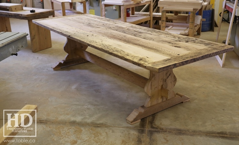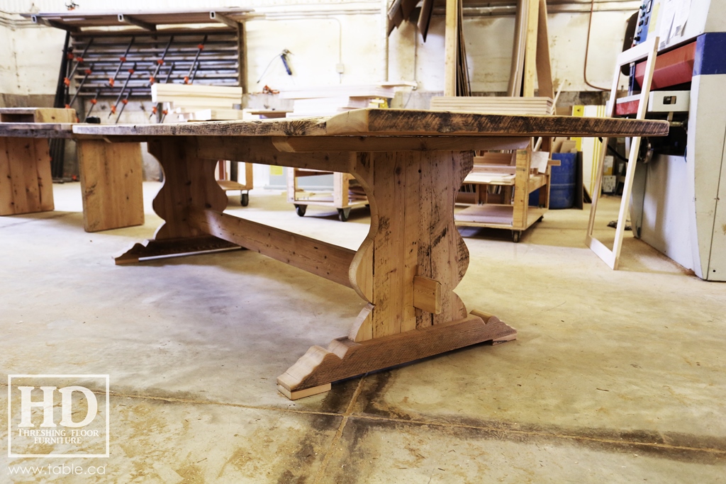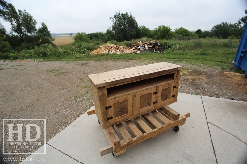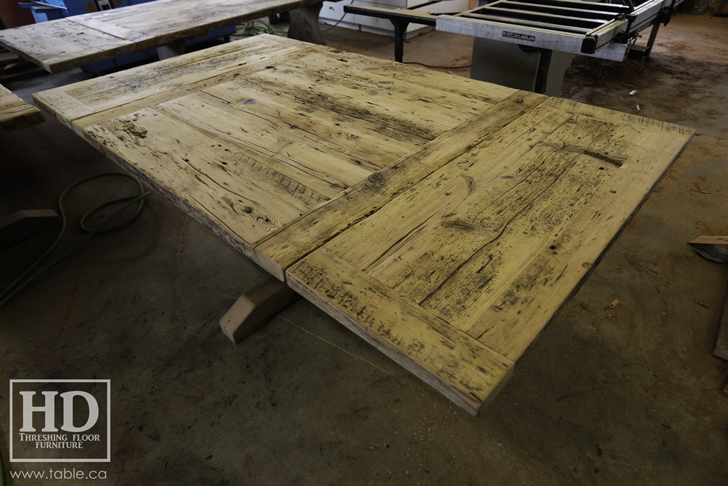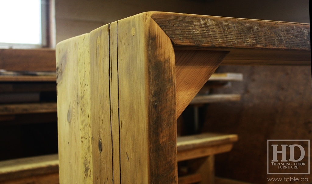 Custom Built Reclaimed Wood Tables & Cabinetry Made from Ontario Barnwood – Antique distressing in aged wood maintained – Original barnwood edges maintained