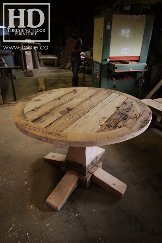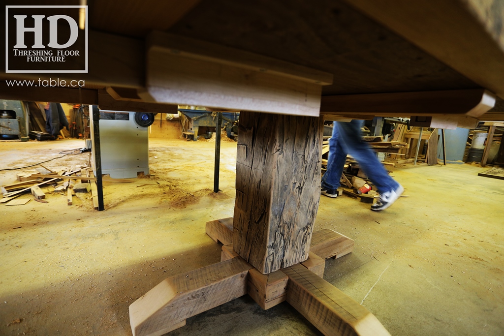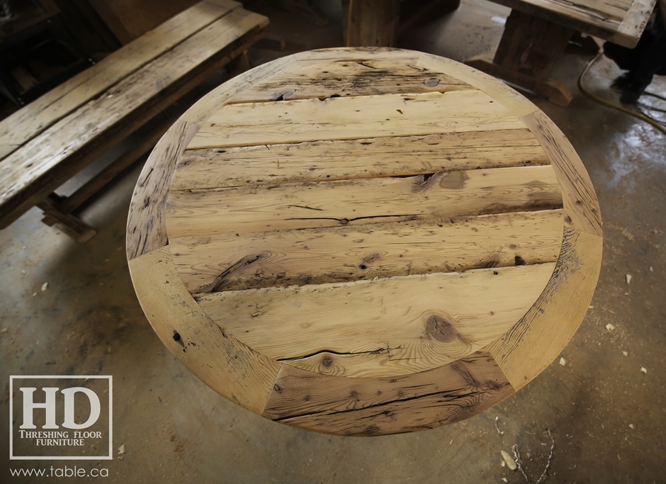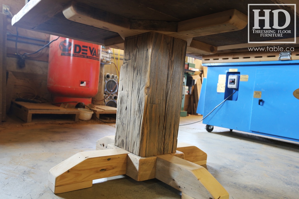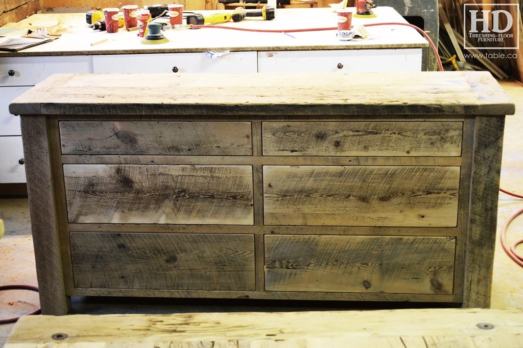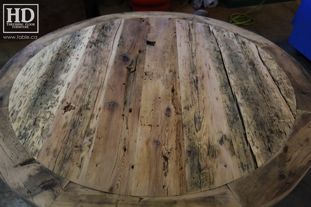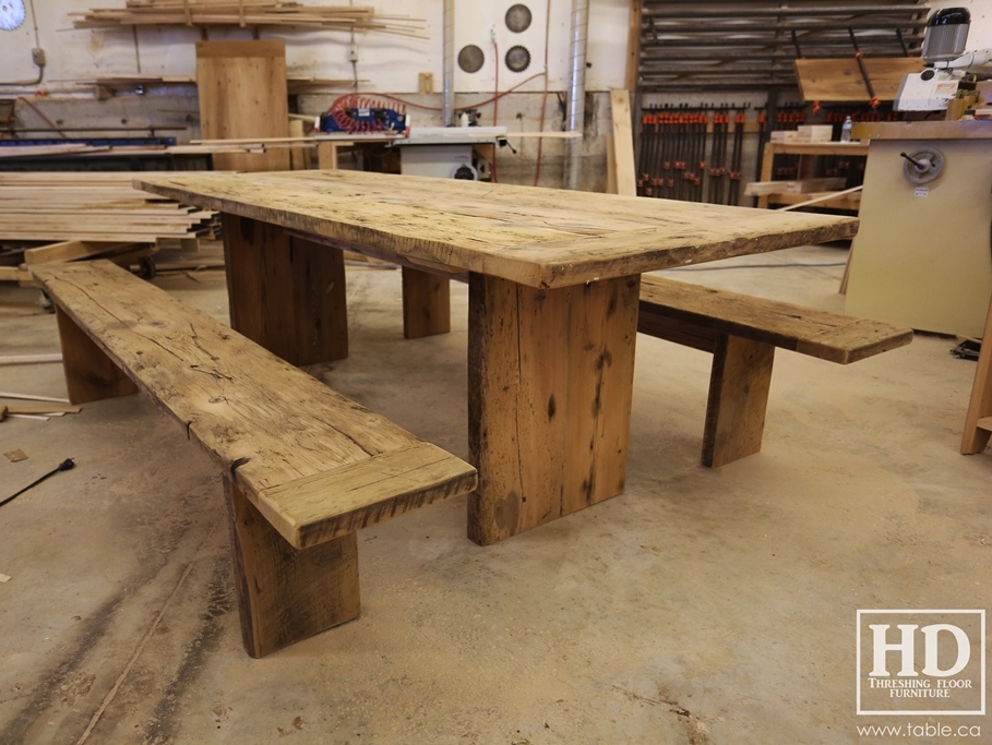 Custom Built Reclaimed Wood Tables & Cabinetry Made from Ontario Barnwood – Antique distressing in aged wood maintained – Original barnwood edges maintained