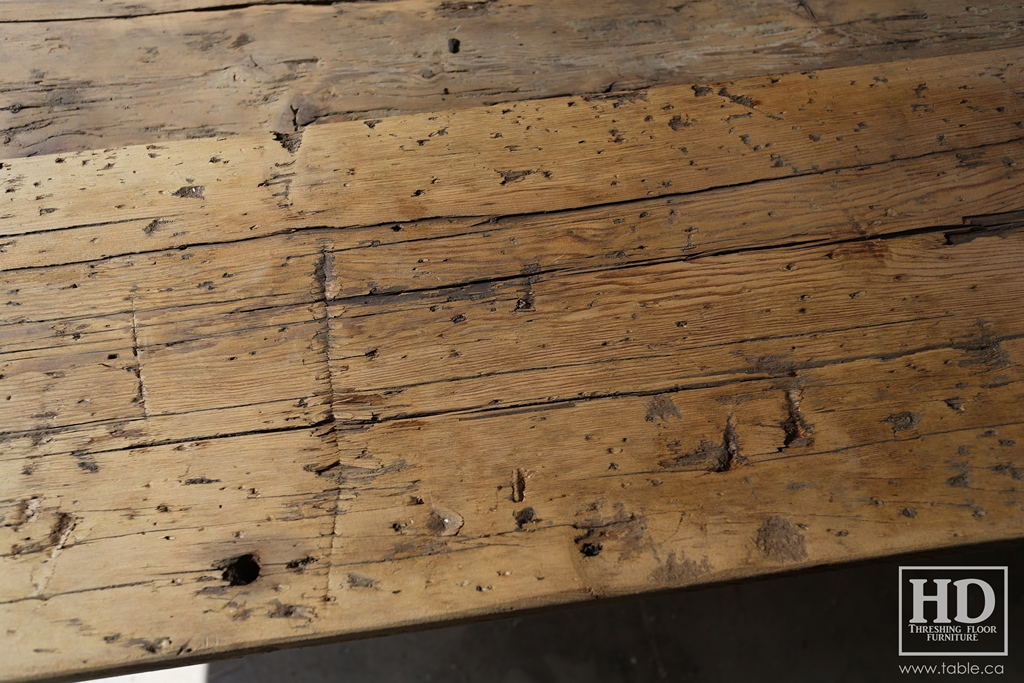 Custom Built Reclaimed Wood Tables & Cabinetry Made from Ontario Barnwood – Antique distressing in aged wood maintained – Original barnwood edges maintained