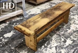 Description: Custom Unfinished Reclaimed Wood Furniture by HD Threshing Floor Furniture – Rustic, Authentic Ontario Barnwood Construction – Threshing Floor Board Tops – Grainery Board Construction Cabinetry – Original pioneer distressing kept – Original barnwood edges maintained