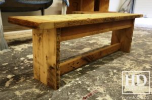 Description: Custom Unfinished Reclaimed Wood Furniture by HD Threshing Floor Furniture – Rustic, Authentic Ontario Barnwood Construction – Threshing Floor Board Tops – Grainery Board Construction Cabinetry – Original pioneer distressing kept – Original barnwood edges maintained