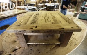 Description: Custom Unfinished Reclaimed Wood Furniture by HD Threshing Floor Furniture – Rustic, Authentic Ontario Barnwood Construction – Threshing Floor Board Tops – Grainery Board Construction Cabinetry – Original pioneer distressing kept – Original barnwood edges maintained