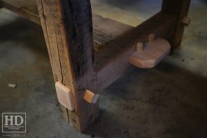Description: Custom Unfinished Reclaimed Wood Furniture by HD Threshing Floor Furniture – Rustic, Authentic Ontario Barnwood Construction – Threshing Floor Board Tops – Grainery Board Construction Cabinetry – Original pioneer distressing kept – Original barnwood edges maintained