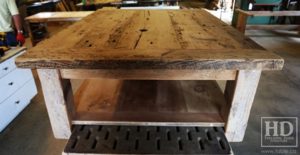 Description: Custom Unfinished Reclaimed Wood Furniture by HD Threshing Floor Furniture – Rustic, Authentic Ontario Barnwood Construction – Threshing Floor Board Tops – Grainery Board Construction Cabinetry – Original pioneer distressing kept – Original barnwood edges maintained