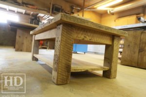 Description: Custom Unfinished Reclaimed Wood Furniture by HD Threshing Floor Furniture – Rustic, Authentic Ontario Barnwood Construction – Threshing Floor Board Tops – Grainery Board Construction Cabinetry – Original pioneer distressing kept – Original barnwood edges maintained