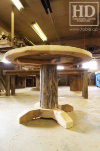 Description: Custom Unfinished Reclaimed Wood Furniture by HD Threshing Floor Furniture – Rustic, Authentic Ontario Barnwood Construction – Threshing Floor Board Tops – Grainery Board Construction Cabinetry – Original pioneer distressing kept – Original barnwood edges maintained