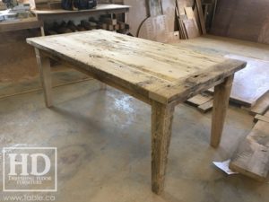 Description: Custom Unfinished Reclaimed Wood Furniture by HD Threshing Floor Furniture – Rustic, Authentic Ontario Barnwood Construction – Threshing Floor Board Tops – Grainery Board Construction Cabinetry – Original pioneer distressing kept – Original barnwood edges maintained