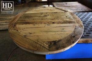Description: Custom Unfinished Reclaimed Wood Furniture by HD Threshing Floor Furniture – Rustic, Authentic Ontario Barnwood Construction – Threshing Floor Board Tops – Grainery Board Construction Cabinetry – Original pioneer distressing kept – Original barnwood edges maintained