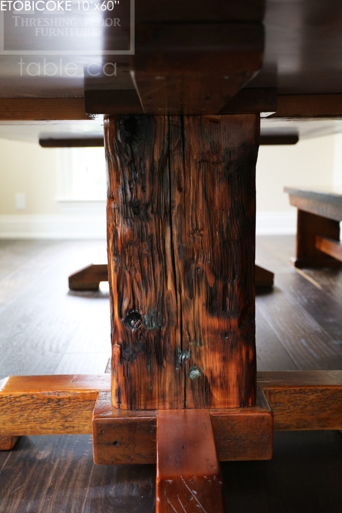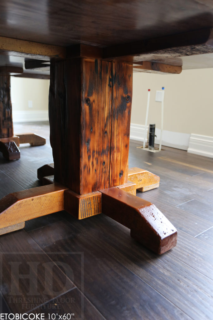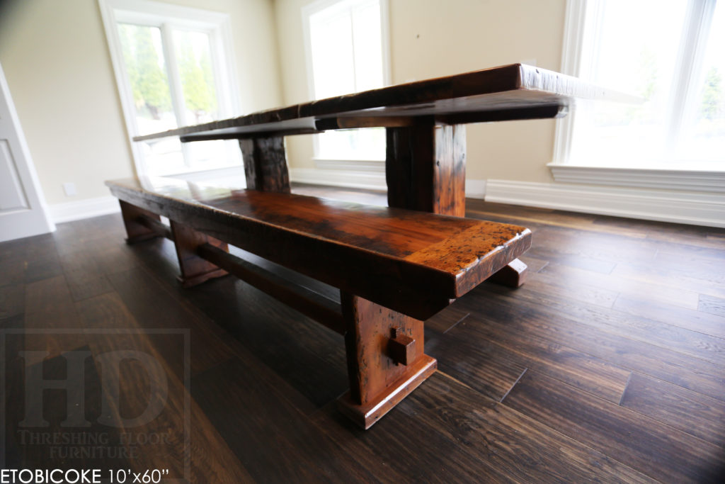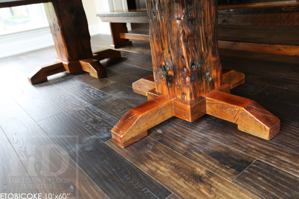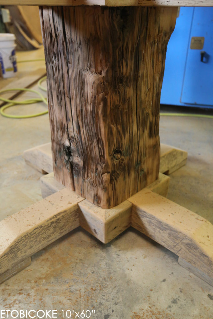 10′ x 60″ Wide Reclaimed Wood Pedestal Table & Bench we made for an Etobicoke Home