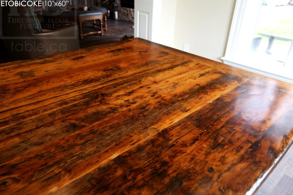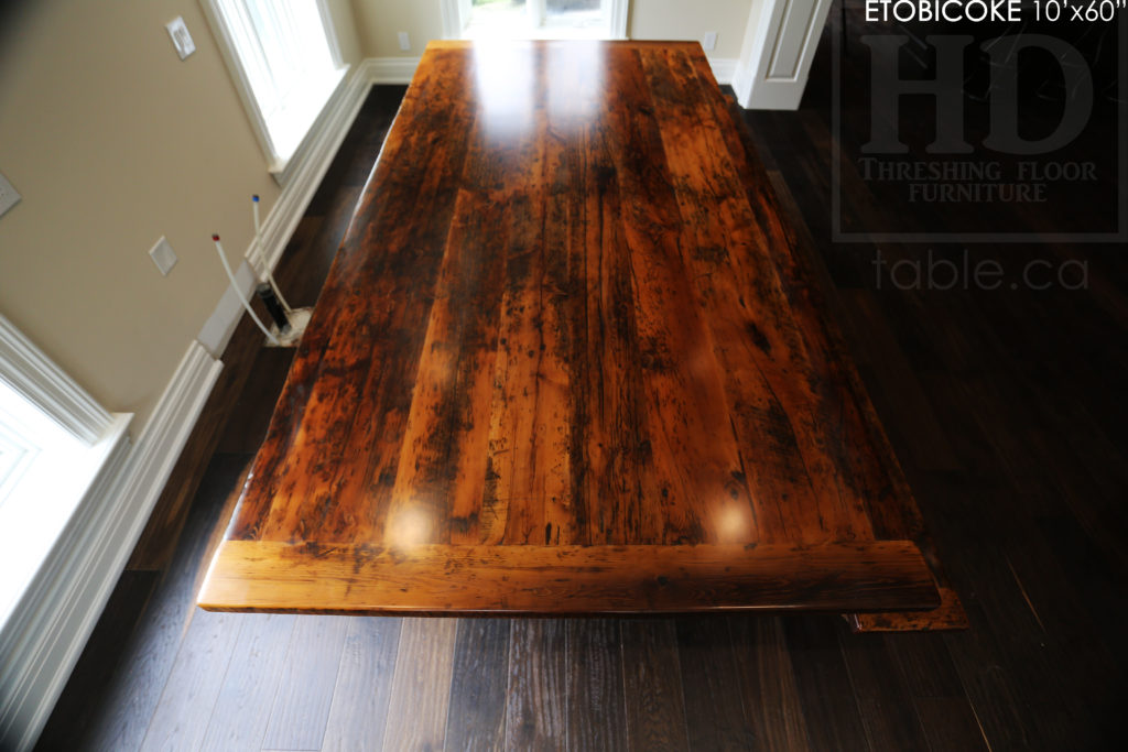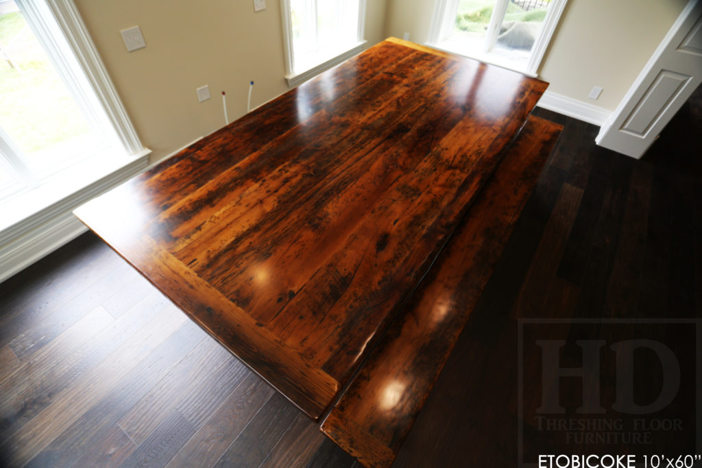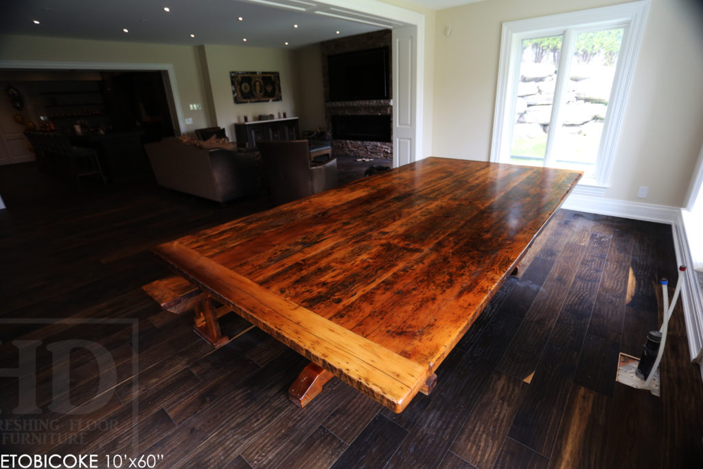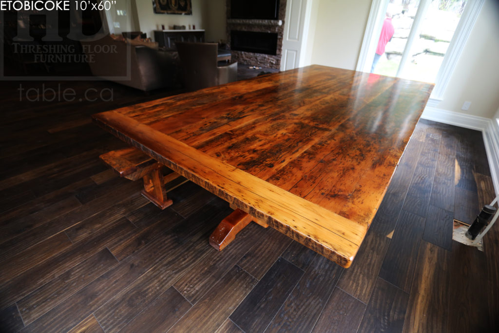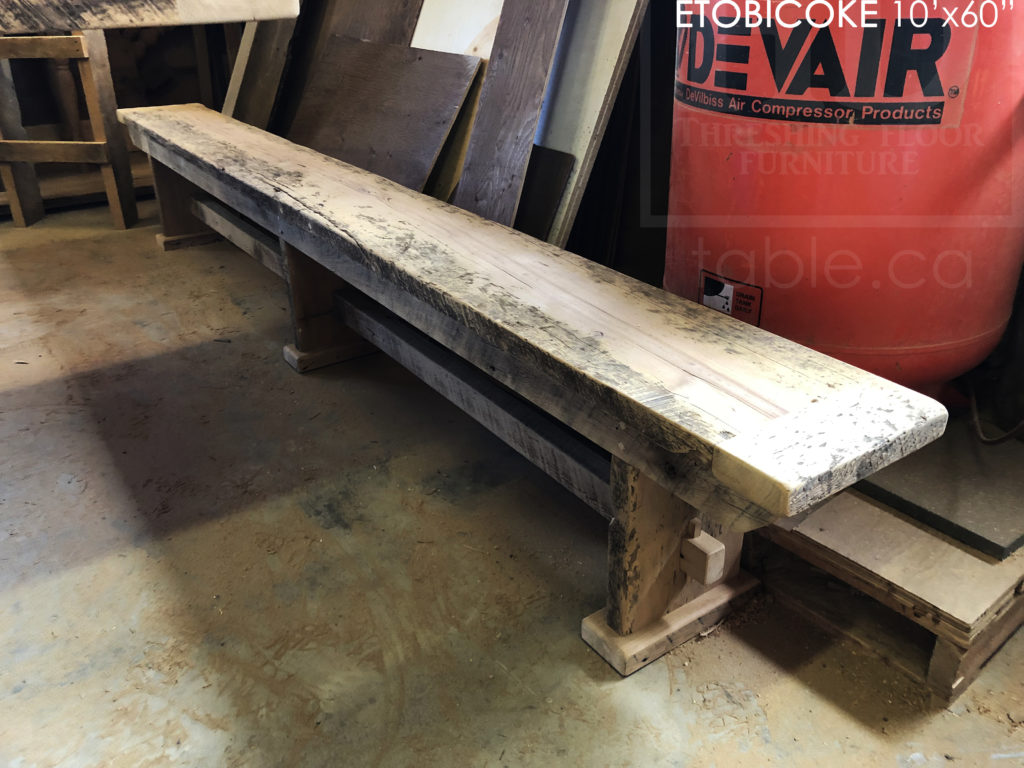 10′ x 60″ Wide Reclaimed Wood Pedestal Table & Bench we made for an Etobicoke Home