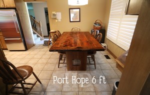 Details of table: 6 ft Plank style base – 3″ reclaimed joist material posts- 8″x8″ end cavity – reclaimed threshing floor hemlock – premium epoxy/matte polyurethane finish