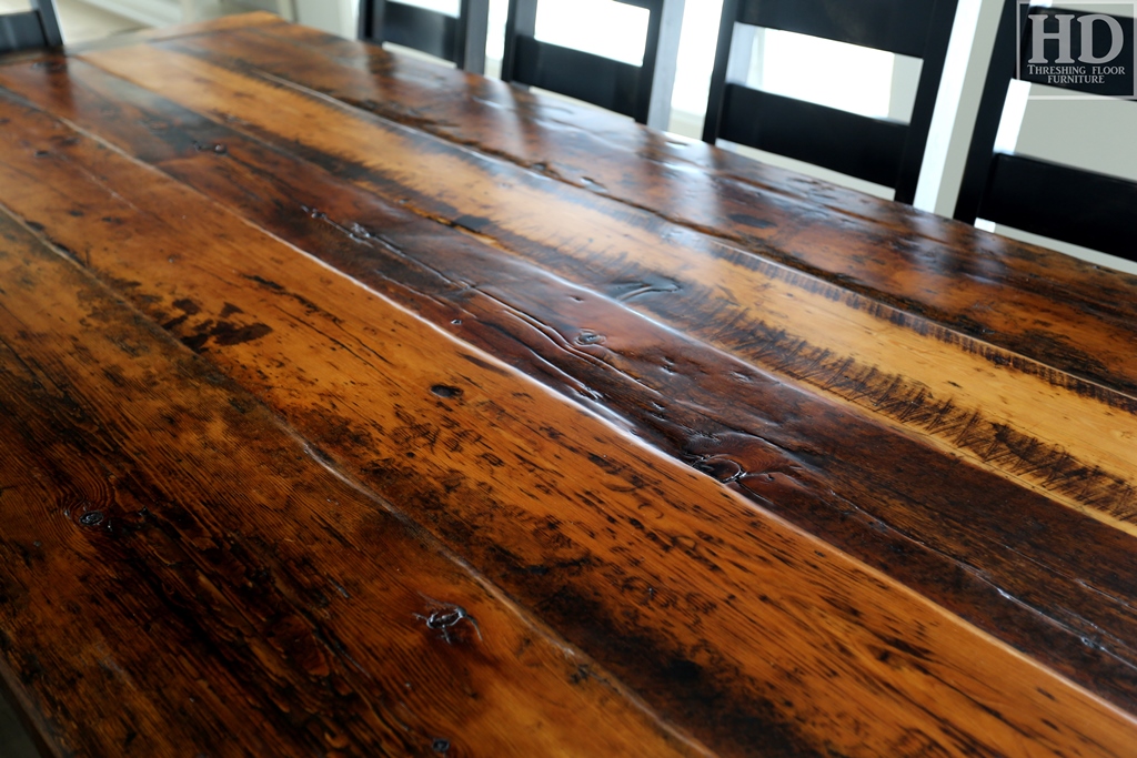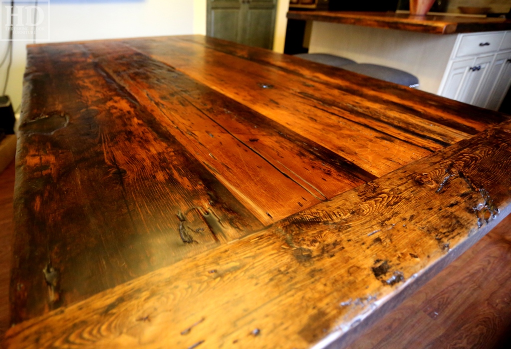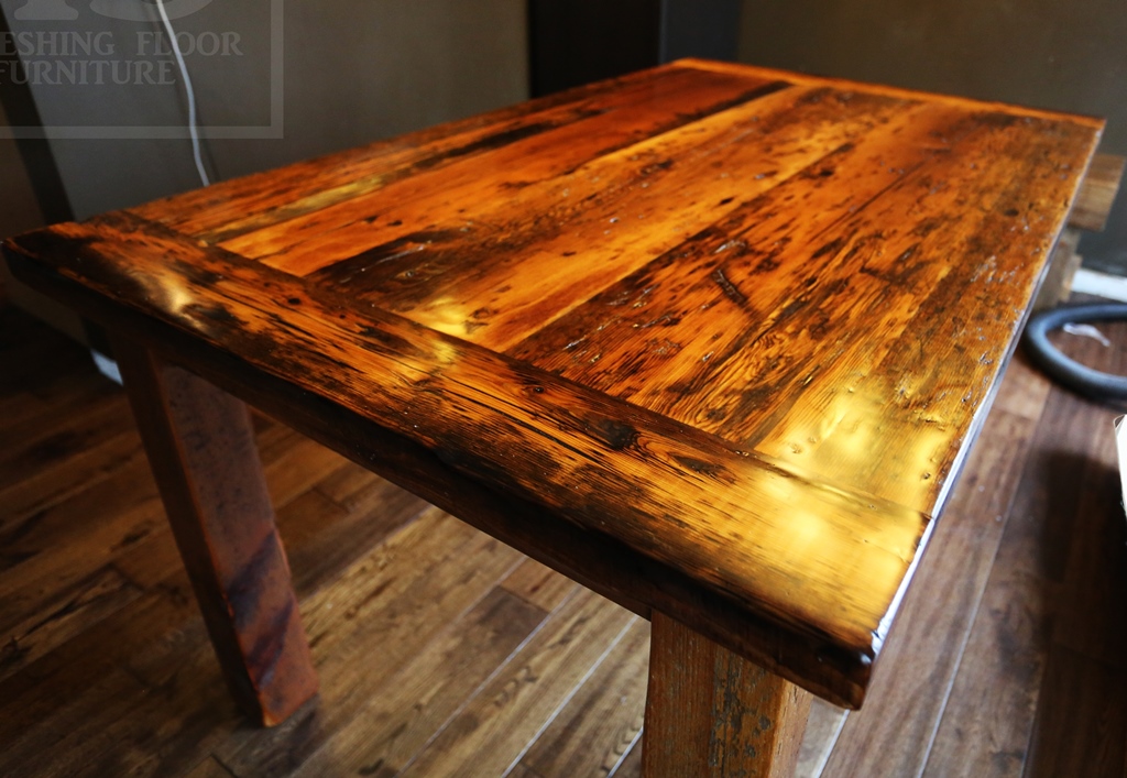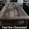 If you want to feel the character in the wood more, consider our lighter coating option. We keep nearly all the distressing in the raw materials – which means at the unfinished stage our furniture is very rough. This we solve by filling in the cavities. With this option, we simply fill the distressing less. While you will feel the character, this finish is slightly less practical as it will be trickier to have your plates/wine glasses sit flat. The tops are still completely waterproof, durable and easy to clean.
