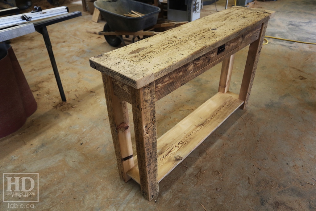 Our reclaimed wood side (also called sofa, buffet or console) tables are custom built. For similar designs with drawers and/or doors, see our Buffets page under the Furniture tab.